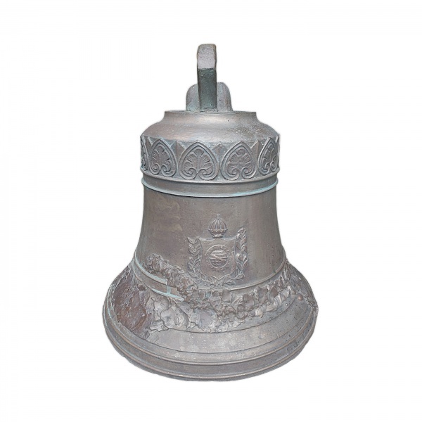 • Sino em bronze. Brasil Séc. XIX. Maravilhoso sino em bronze. Apresenta o Brasão do Império. Sem badalo e apresenta restauro. Medidas aprox. 43 cm de altura, 39 cm de largura, 122 cm circunferência da boca.