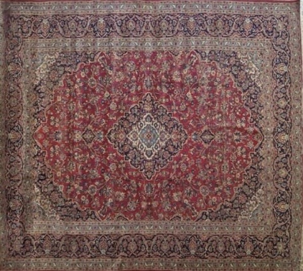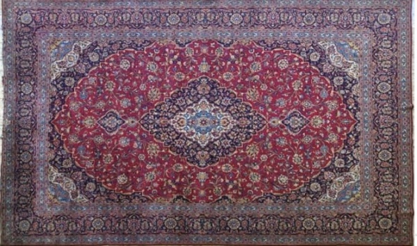 • Irã/Pérsia. Grande e maravilhoso TAPETE KASHAN com medalhão central no tom predominante e lindíssima decoração floral. Medidas aprox. 4,72 x 3,50 m totalizando 16,55 m².