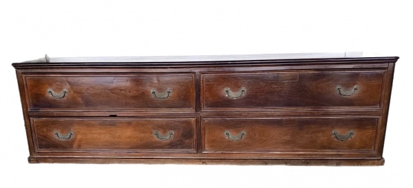 • Brasil Séc. XVIII/XIX. Monumental e excepcional ARCAZ construído em JACARANDÁ com seus puxadores originais, peça de altíssima qualidade. Difícil encontrar peça dessa magnitude e antiguidade em tal estado de conservação. Medidas aprox. 306 cm de largura, 88 cm de altura e 76 cm de profundidade.