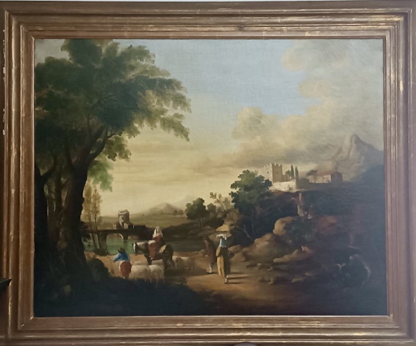 • JAN PETRUS SENTS - escola holandesa - atribuído. Maravilhosa obra óleo sobre tela com cena de campo. Medidas aprox. 94 x 118 cm e com moldura 118 x 144 cm.