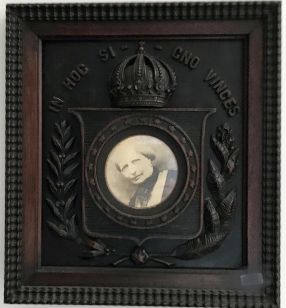 • Brasil Séc. XIX/XX. Muito importante peça de memorabília imperial com representação de S.M.I. Dona Teresa Cristina magnificamente moldurado em jacarandá à guisa de Brasão Imperial sob Coroa. Medidas aprox. 38 x 34 cm.
