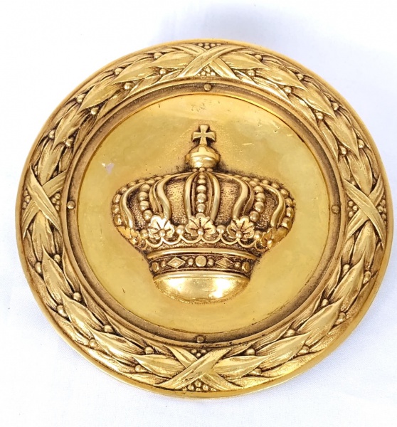 • Brasil Séc. XIX. Muito raro e importante aplique de parede em bronze com ouro ormulu de altíssima qualidade com representação de Coroa Imperial. Item extremamente raro de encontrar. Medidas aprox. 22 cm de diâmetro.