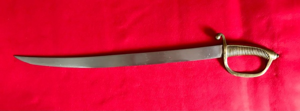 • Império Brasileiro. Espada de músico modelo 1858 – Terçado de músico. Apresenta lira em sua guarda de  latão. (Fonte: `Espadas do Império Brasileiro` de Alfonso Menegassi Filho). Medidas aprox.: total 67 cm, lâmina 55 cm.