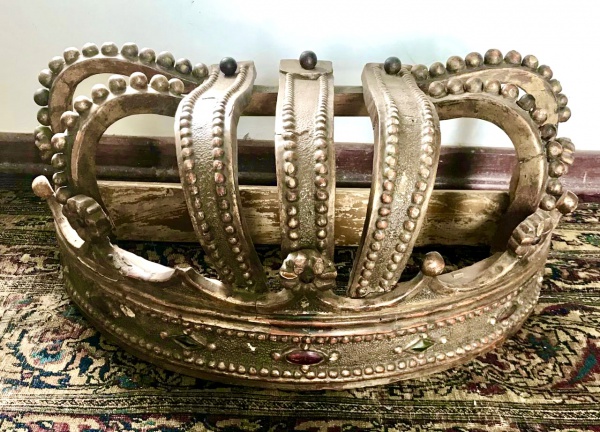 • Brasil Séc. XVIII/XIX. Antiga Coroa construída em madeira nobre, normalmente usada em carruagens pela tradição oral. Peça única, colecionável e em muito bom estado de conservação. Apresenta acabamento à ouro e em bom estado de conservação em função de sua extensa antiguidade. Medidas aprox.: 30 cm de altura, 60 cm de largura e 30 cm de profundidade.
