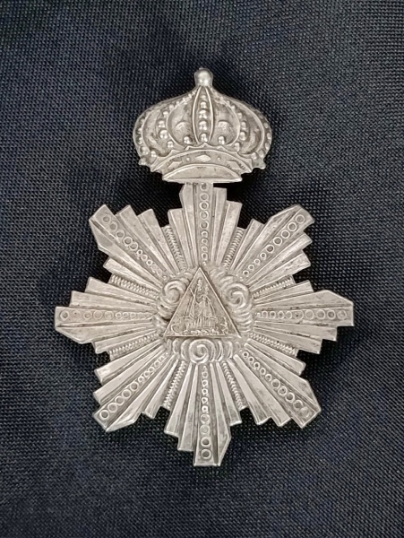 • Casa Imperial Brasileira. Séc. XIX. Broche em prata. Imperial Irmandade de Nossa Senhora do Carmo. Reproduzido em catálogo de grande LEILÃO IMPERIAL 200 ANOS - Escritório de Arte Miguel Salles ocorrido em São Paulo nas datas 20, 21 e 22 de Setembro de 2022. Aprox. 7,5 x 5,5 cm.